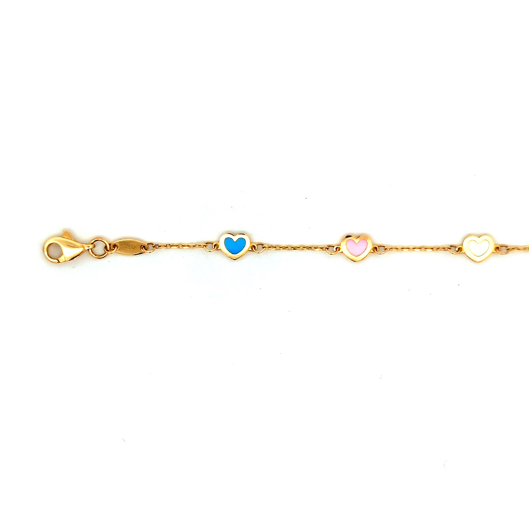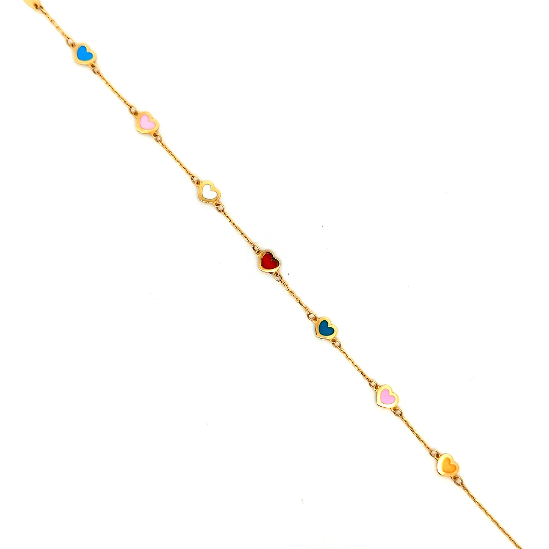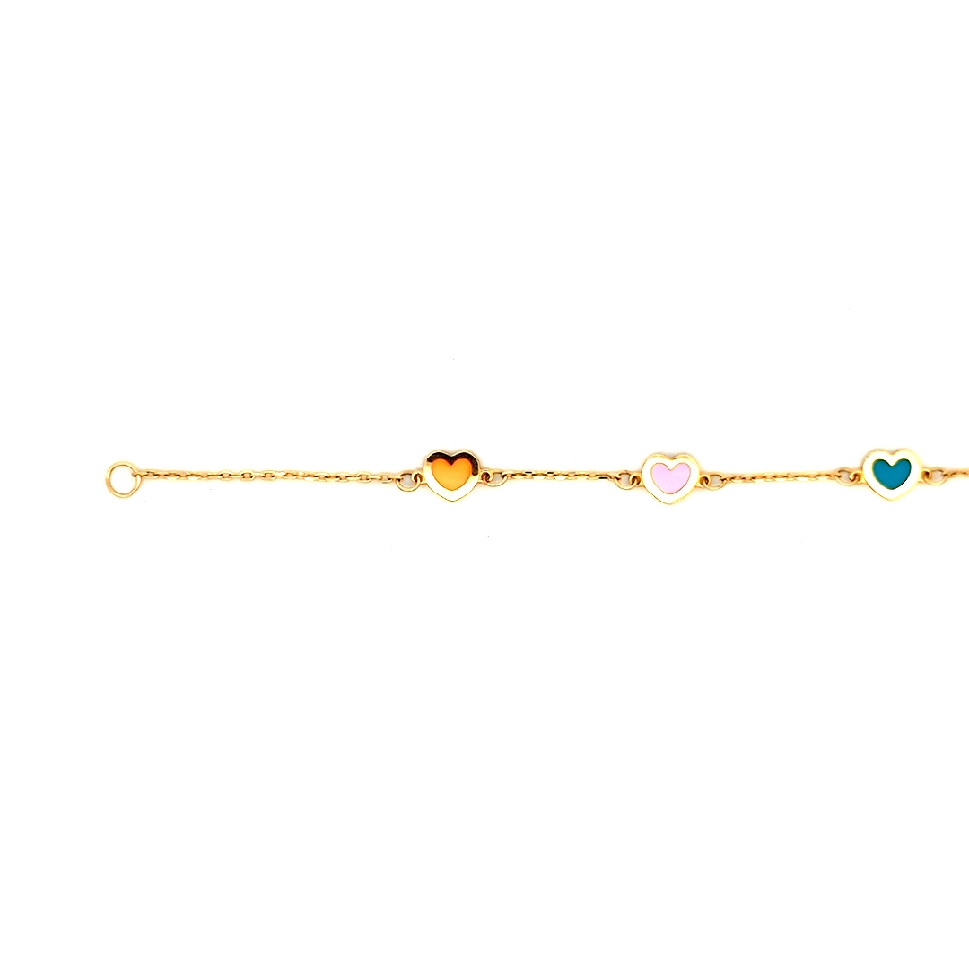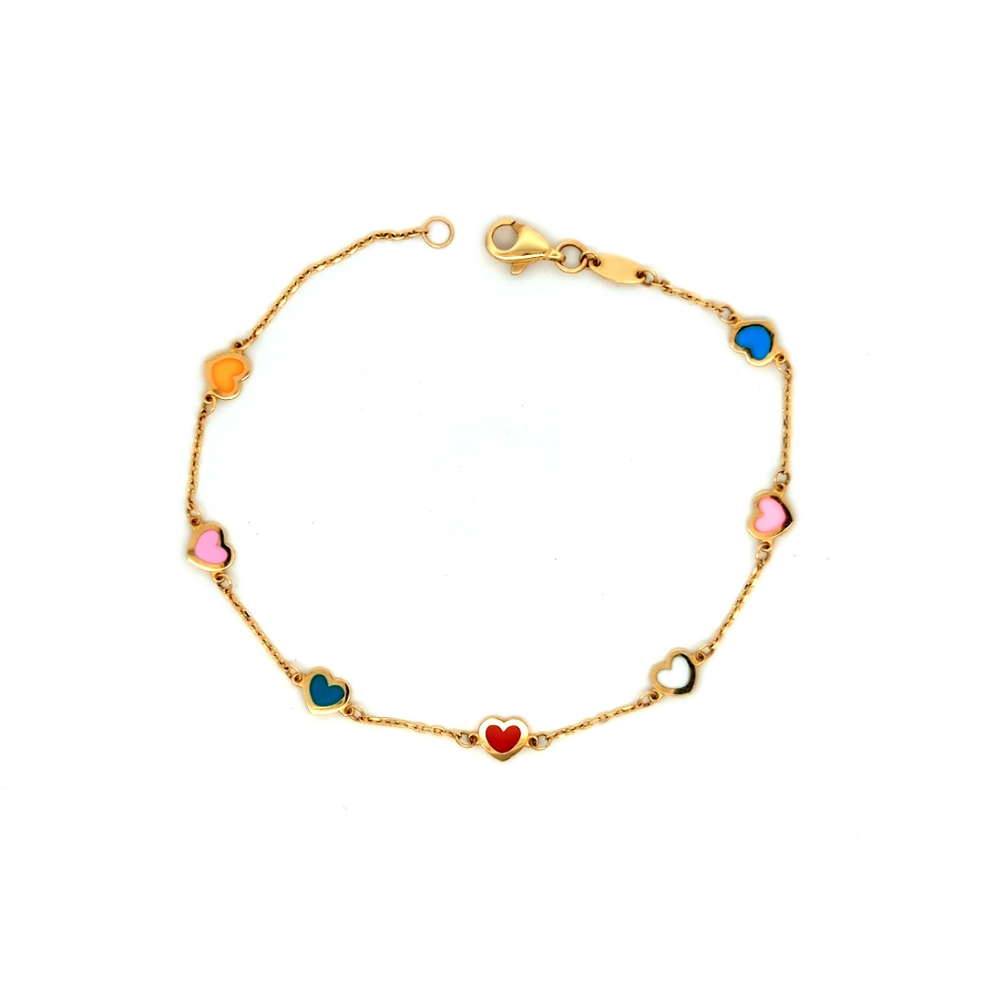 Multicolor Heart Bracelet 14k Yellow Gold