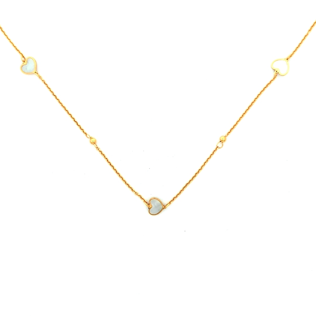 MOP 3 Heart Necklace 14K Yellow Gold