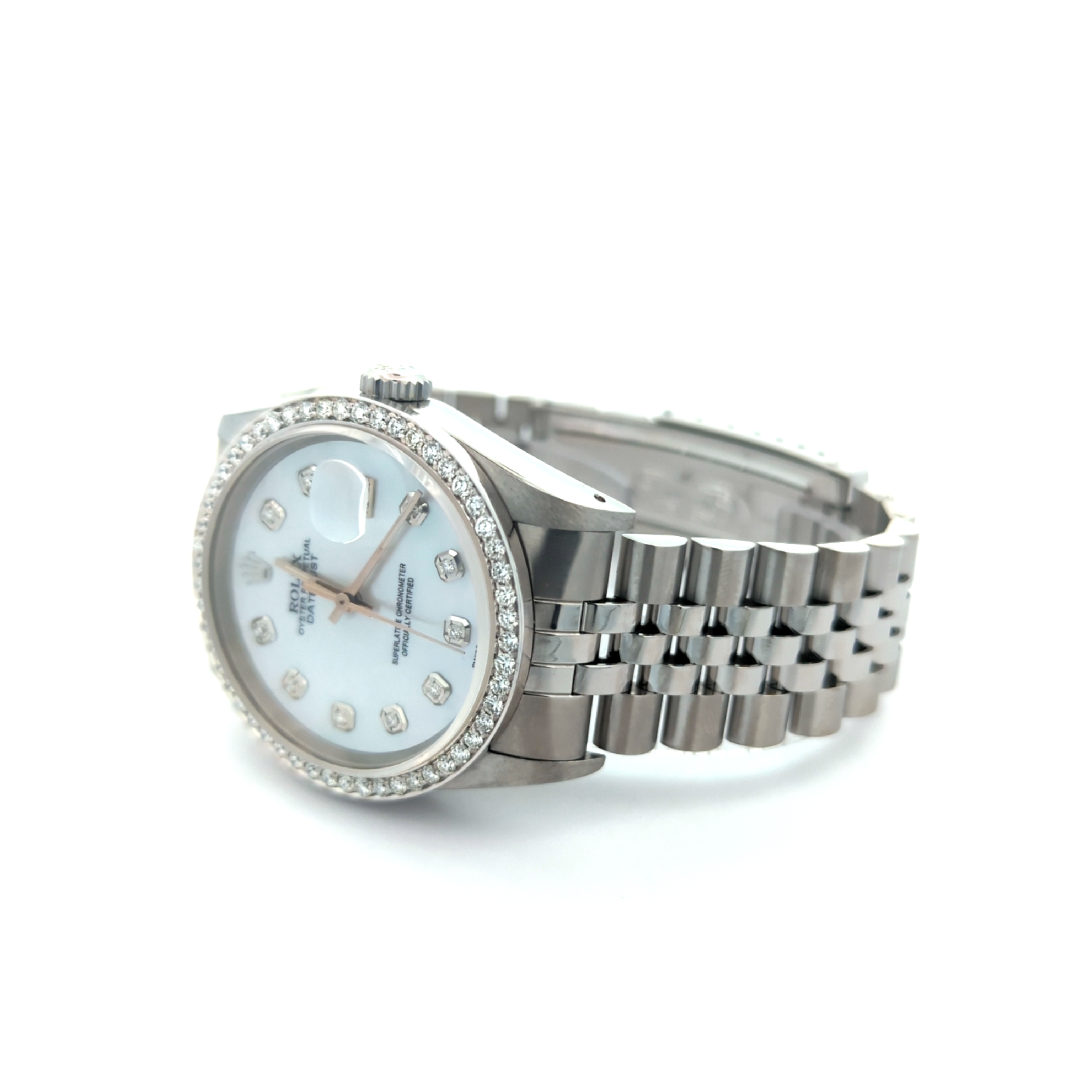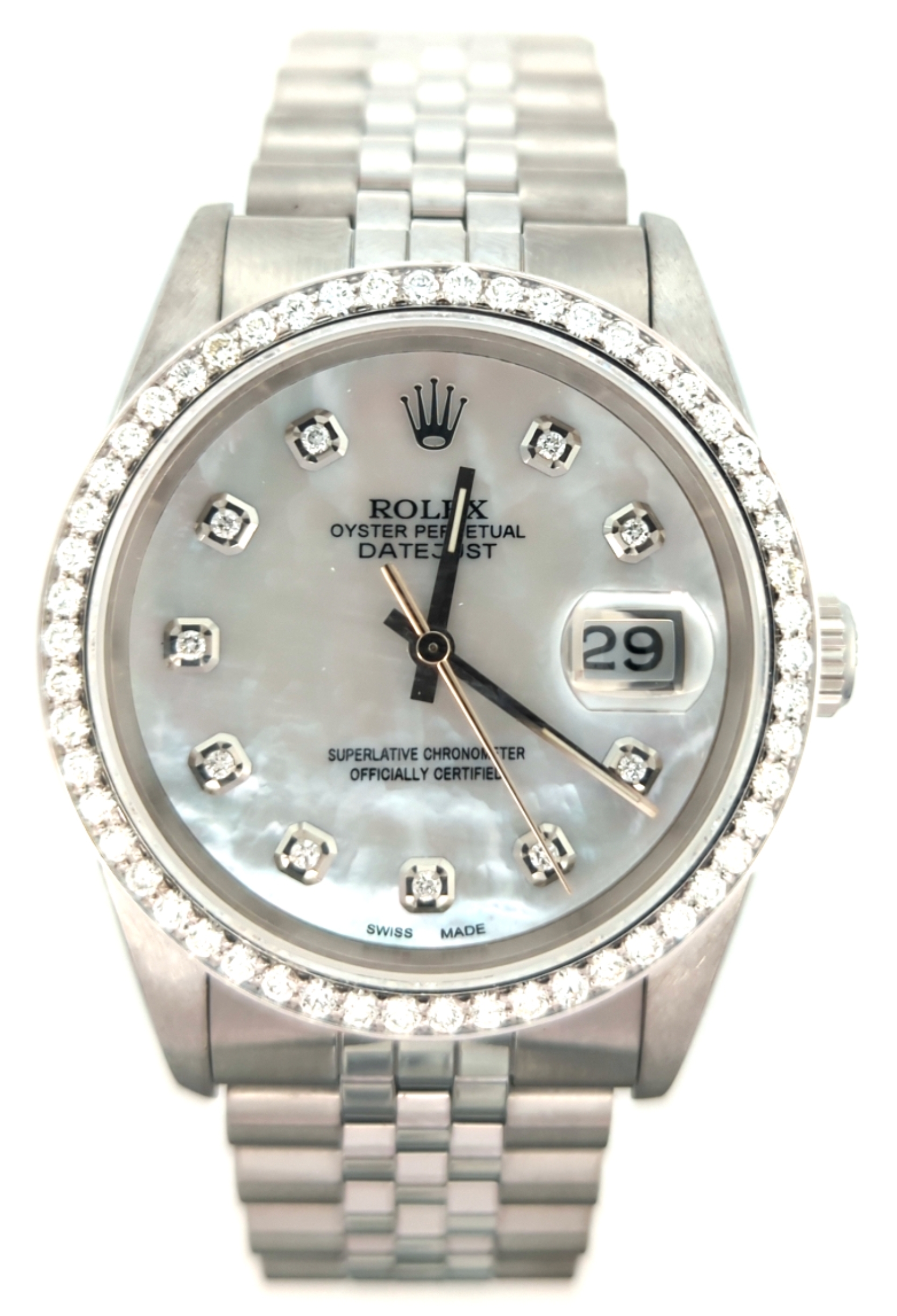 - Dial: Custom White MOP Diamond