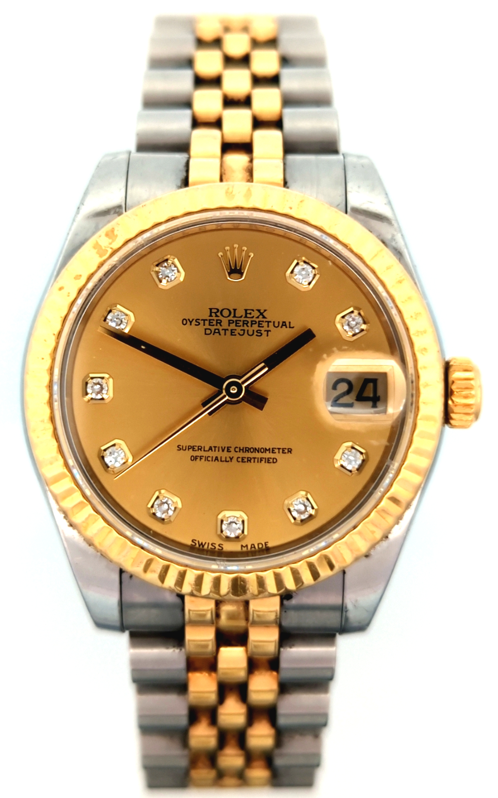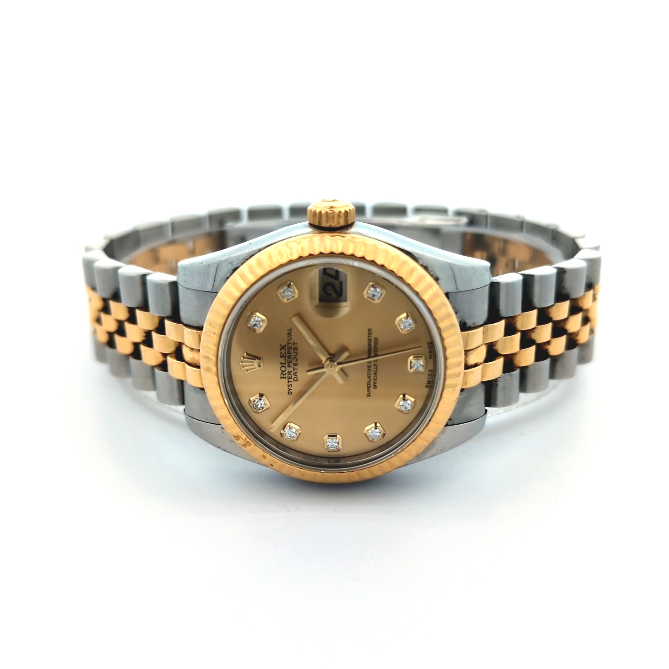 Datejust 31 Steel and Yellow Gold Fluted Bezel Solid Bracelet
