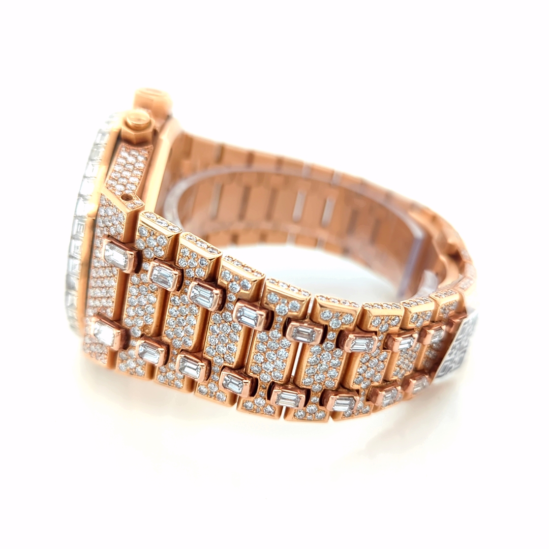 Royal Oak Iced Out Baguettes Rose Gold