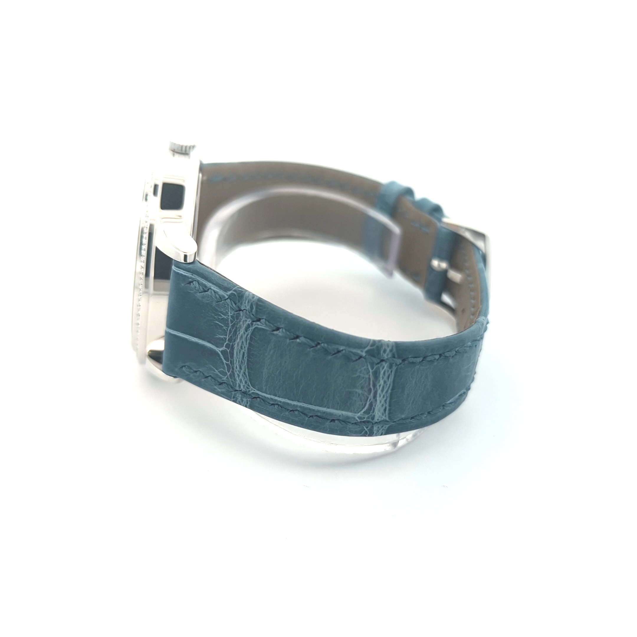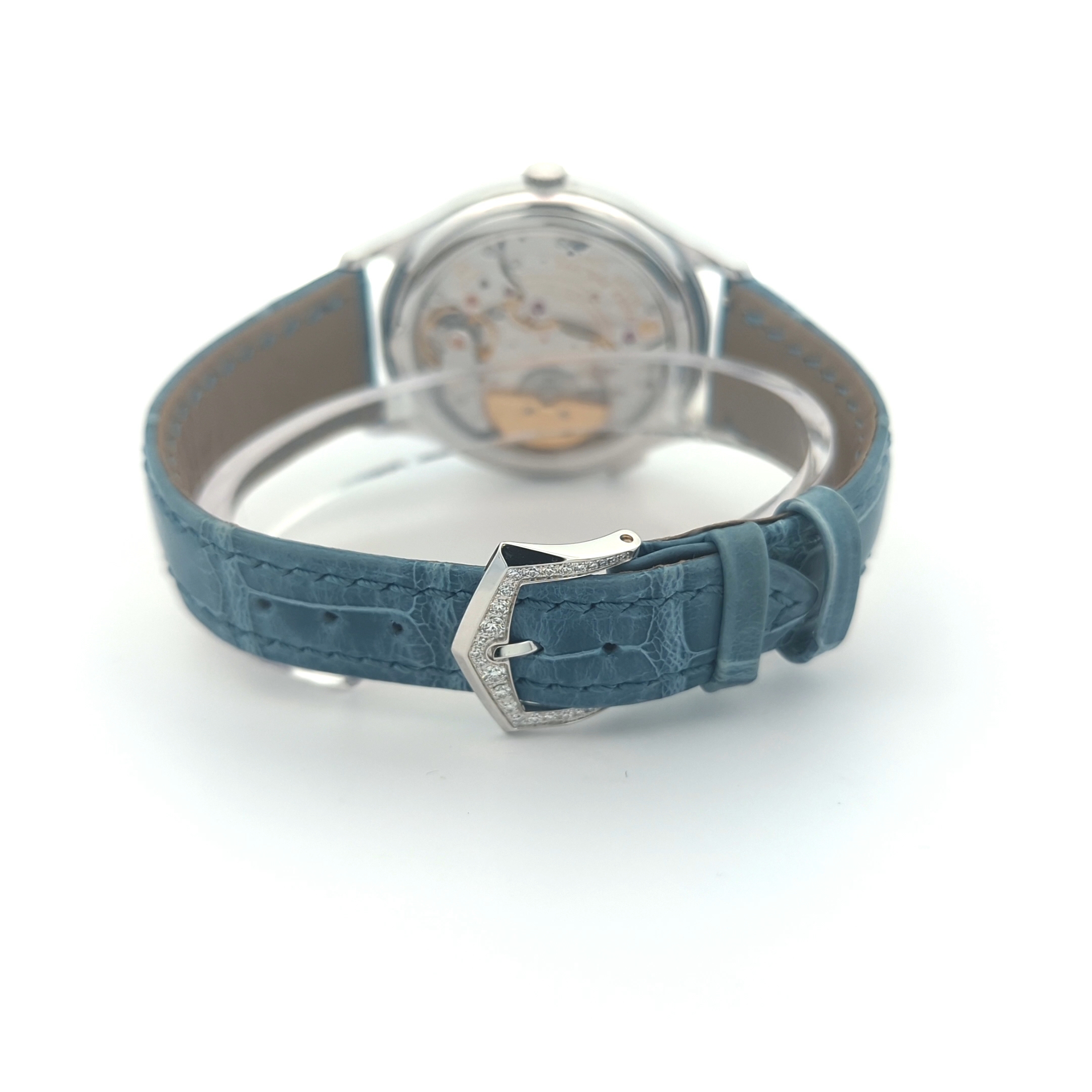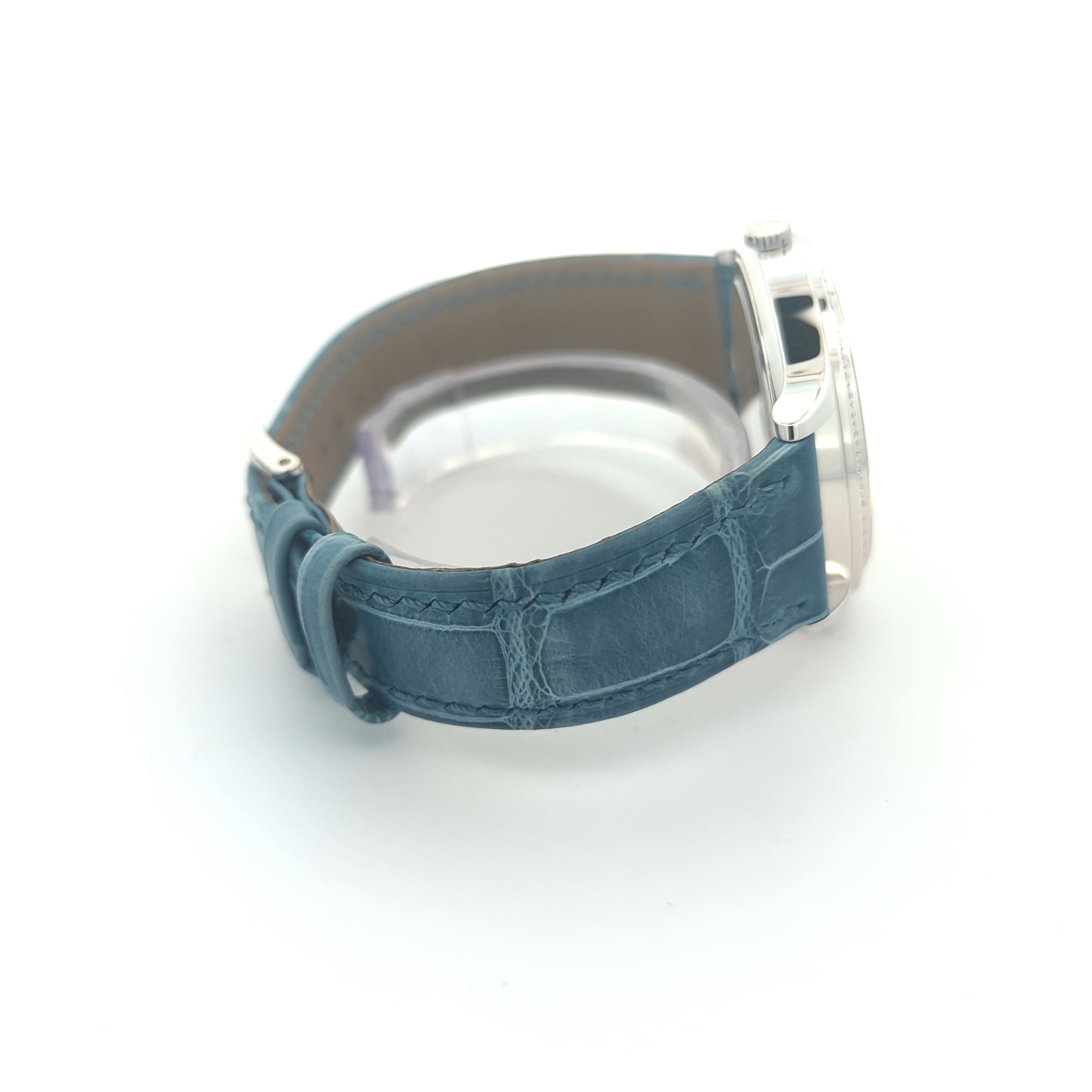- Dial: Blue-gray hand-guilloched with old-basket weave motif