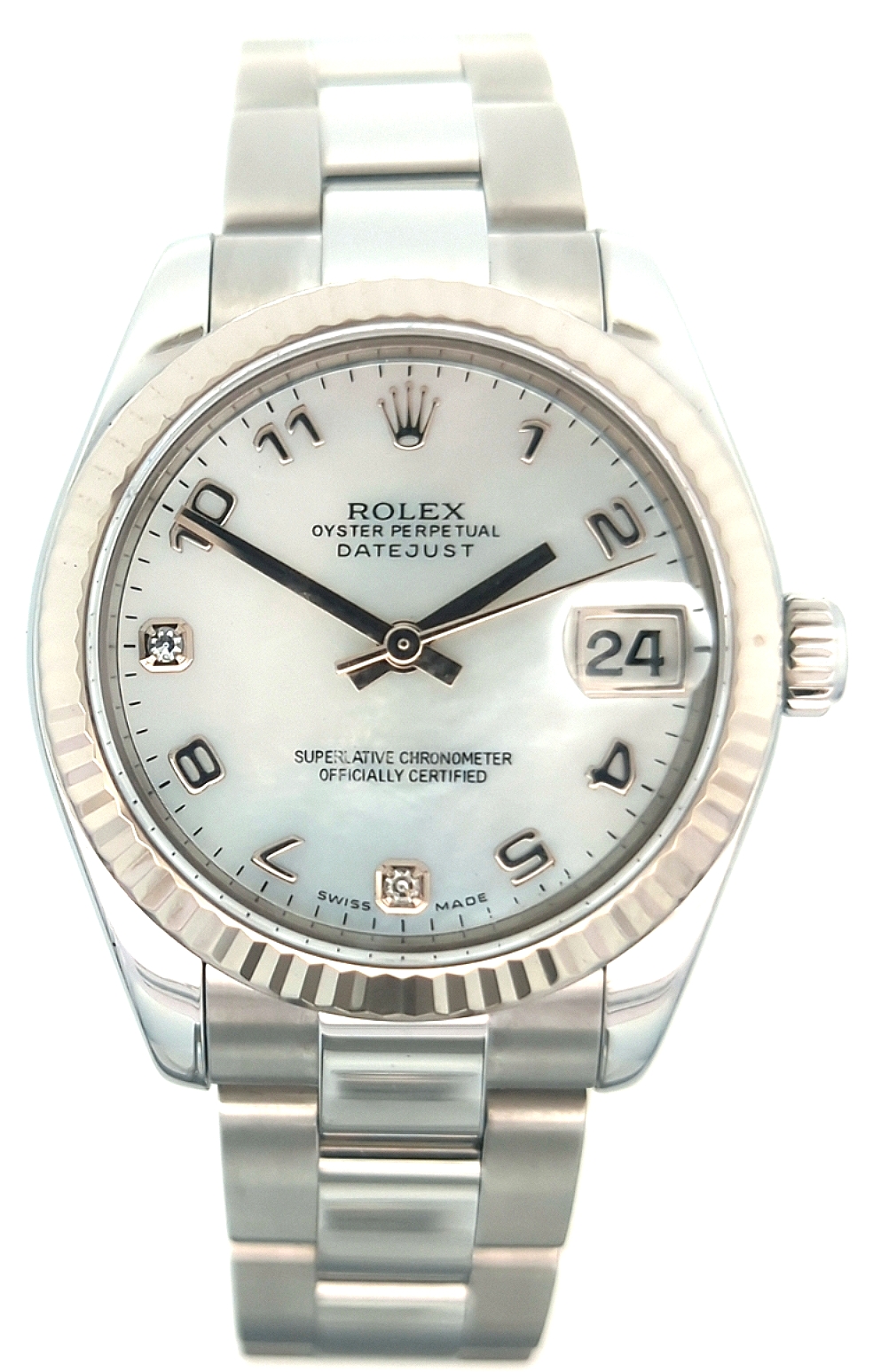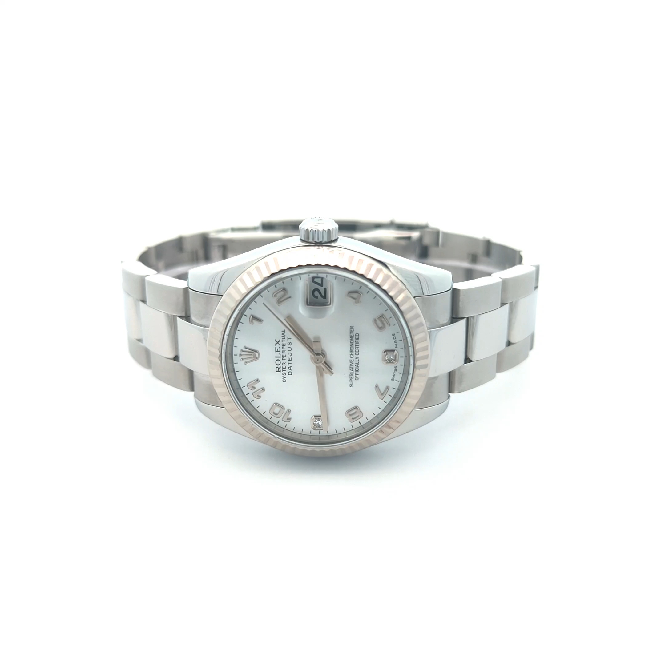 - Dial: White MOP Arabic Diamond 6 & 9