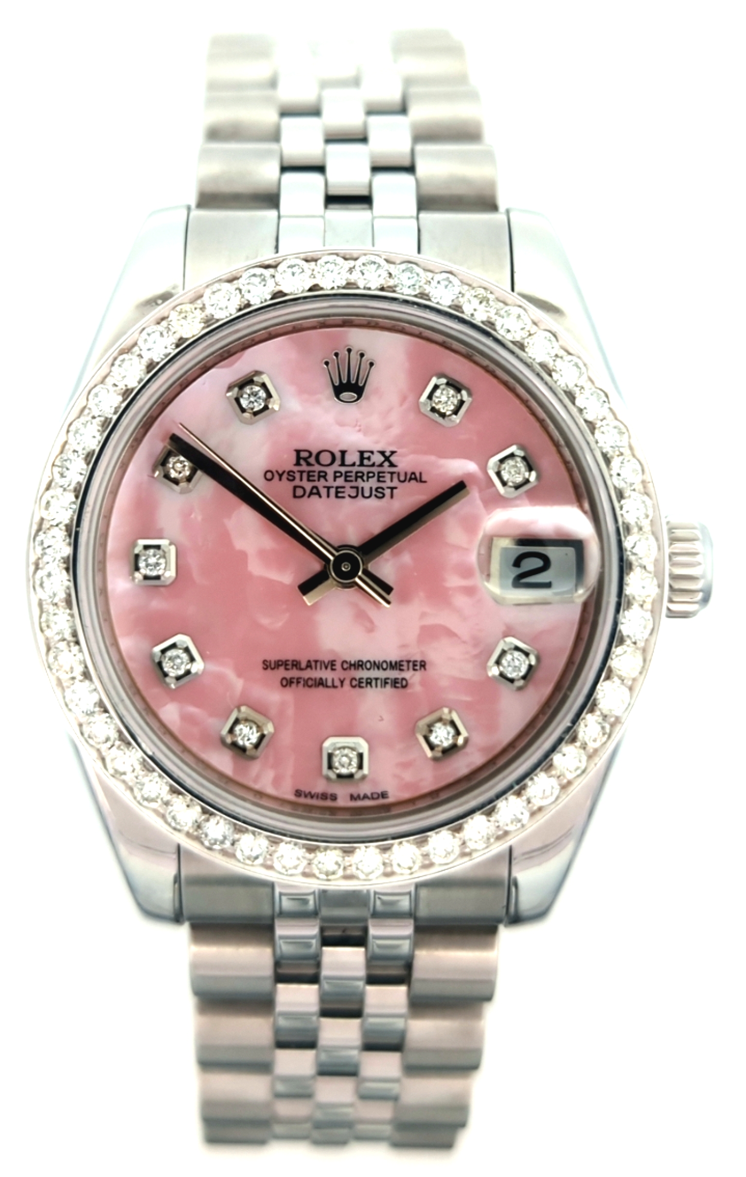 - Dial: Custom Pink MOP Diamond