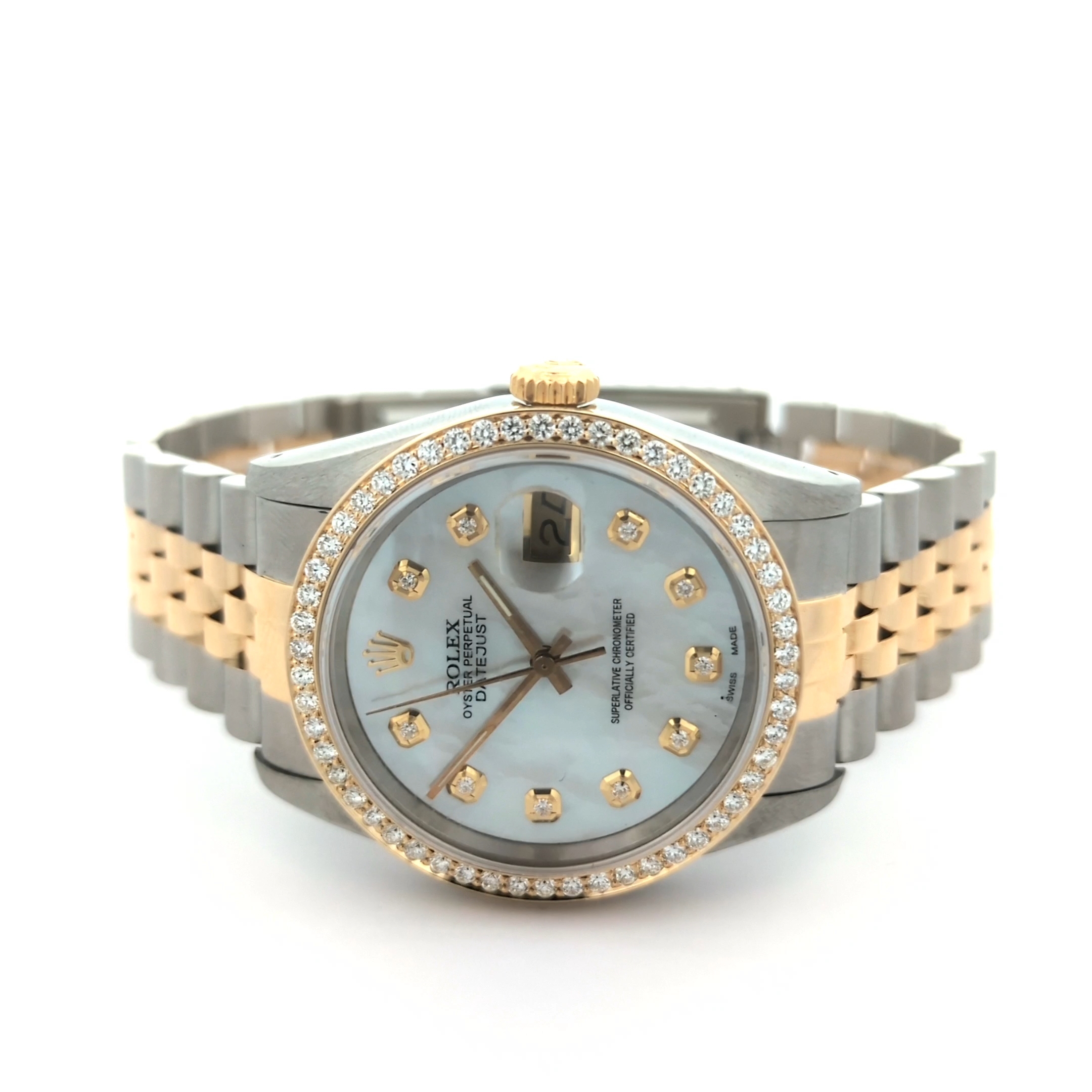 - Dial: Custom White MOP Diamond